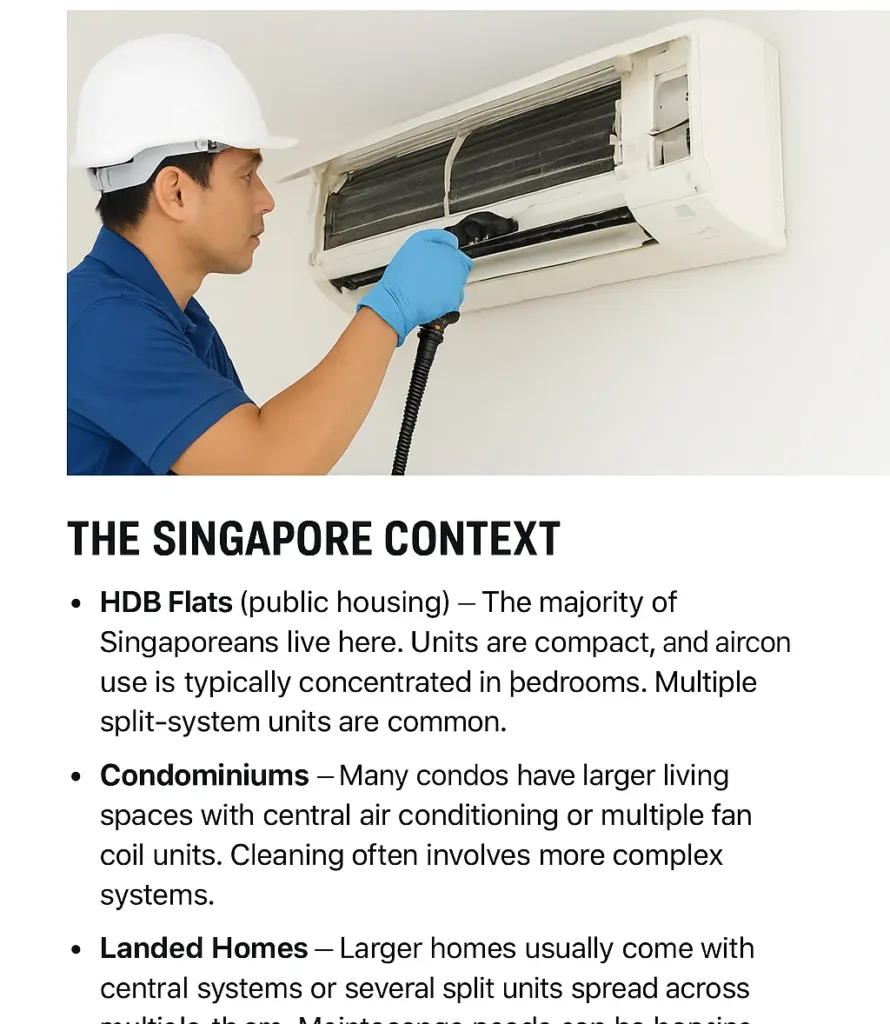 • Landed Homes – Larger homes usually come with central systems or several split units spread across multiple floors. Maintenance needs can be heavier.